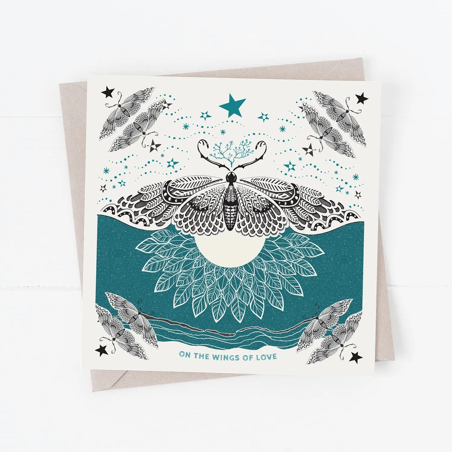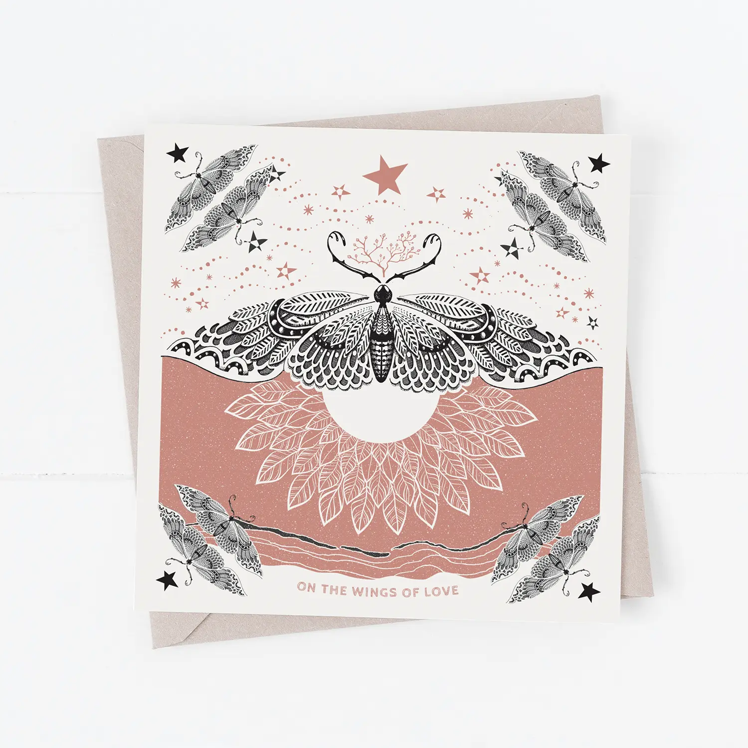 Crafted with care, the intricate Wings of Love design, illustrated by Georgie Letters, is digitally printed on recycled cardstock in a charming oatmeal hue. Each card is accompanied by a recycled paper envelope and housed in a biodegradable presentation wallet, reflecting our commitment to sustainability.