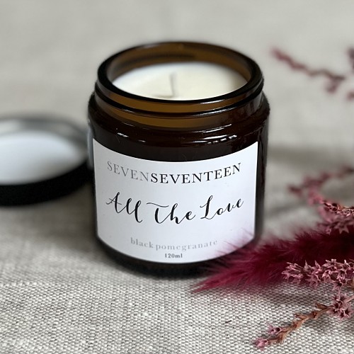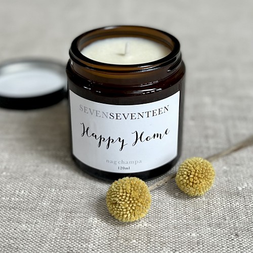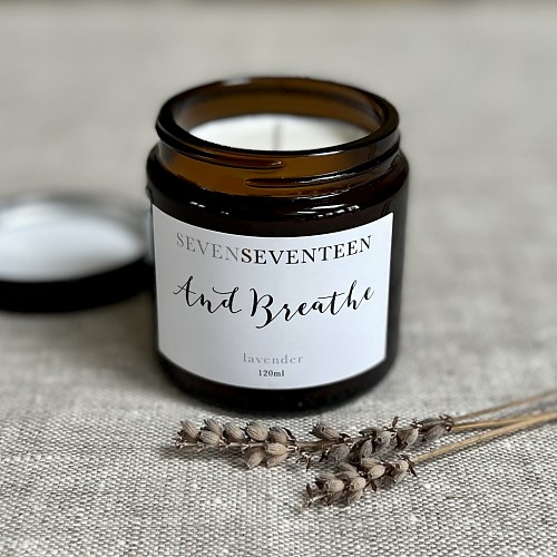 • A hand-poured plant-based candle, available in three scent options, presented in a recycled glass pharmacy jar by SevenSeventeen.