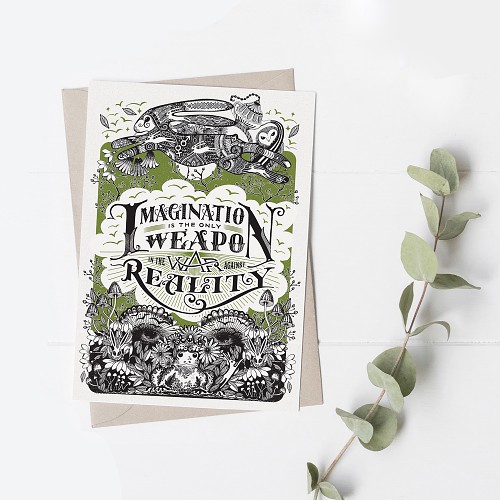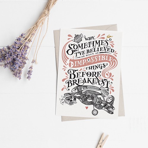• A beautifully illustrated greetings card by artist Georgie Letters, printed on recycled card in a compostable presentation wallet. Choose from six card designs inspired by our Alice in Wonderland and Creature Comforts ranges, available in five colorways: Plum, Rose, Blue, Sage, and Teal. Specify your color preference in the comments section, or we’ll select one for you.